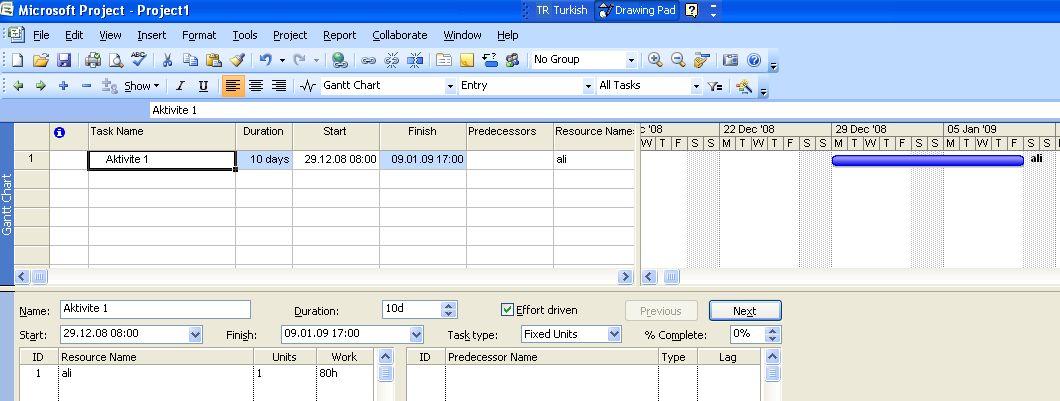 - Sıra oluşturun – Aktivitelerin birbirleri arasındaki yapılış sırasını oluşturun.