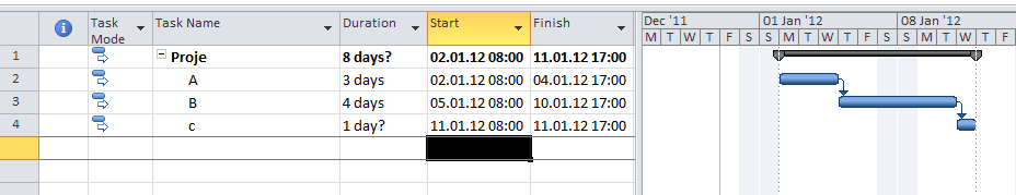 8 – OK’lere basarak Gantt diyagramına dönün.