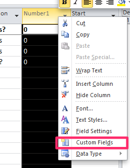 Açılan menüde Custom Fields ı işaretleyin